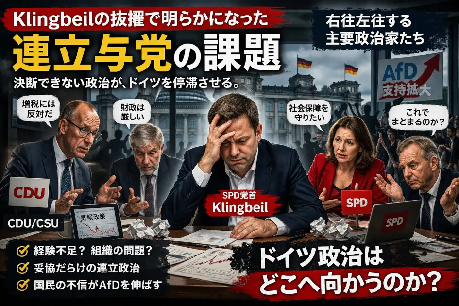 SPDは若手のKlingbeilを前面に押し出したが、発信力だけでは政治は動かない。 調整はできても、決断し実行する力が問われている。